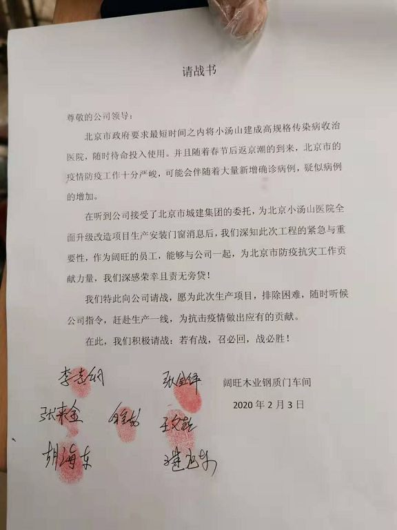 面對著嚴峻的疫情防控工作,闊旺門業(yè)作為一家門窗生產(chǎn)企業(yè),勇于肩負起社會責(zé)任,有條不紊的配合著一道道緊急指令的進行。闊旺員工積極請戰(zhàn):若有戰(zhàn),召必回,戰(zhàn)必勝!努力排除困難,趕赴生產(chǎn)一線,加班加點,日以繼夜,提前完工,為疫情防控工作的順利開展做出了貢獻?! ?