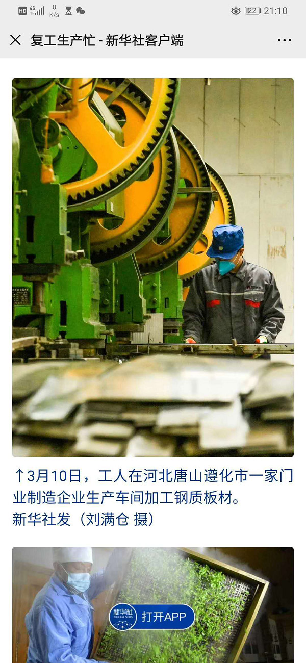 在做好防控新冠肺炎疫情工作的同時,積極復(fù)工復(fù)產(chǎn),加緊恢復(fù)產(chǎn)能。榮幸地登上了新華社新聞報道版面。